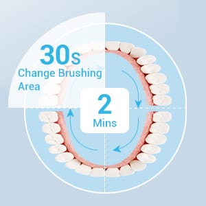 Control de temporizador inteligente incorporado, intervalo de 30 segundos que le recuerda que debe pasar al siguiente cuadrante de su boca, en total son 2 minutos (4 cuadrantes).