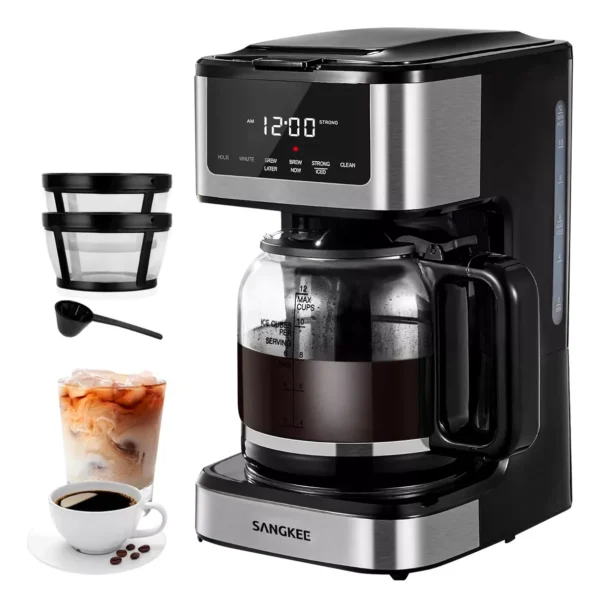 - Programmable Drip Coffee Maker – Enjoy the Best Flavor: Our premium coffee maker will prepare rich, delicious, and fresh coffee. Easy adjustment via the touchscreen control is very convenient, whether you prefer a strong or iced flavor. This coffee machine comes with an LCD screen, allowing you to enjoy your customized coffee anytime with just a few simple steps.